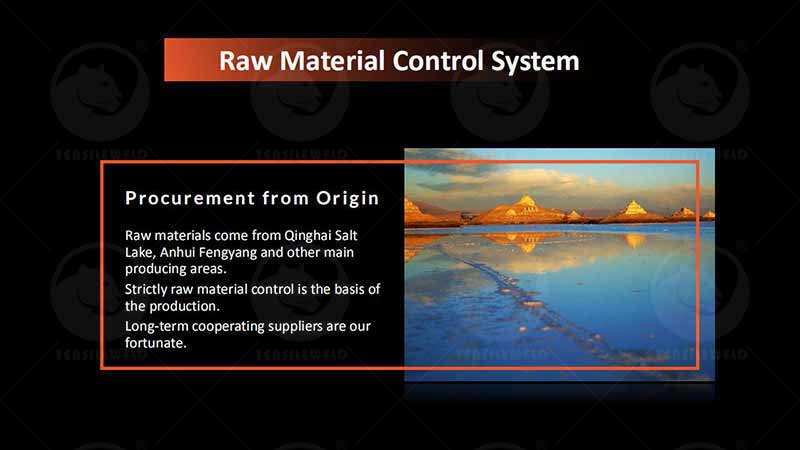 Raw materials come from Qinghai Salt Lake, Anhui Fengyangand other main producing areas.